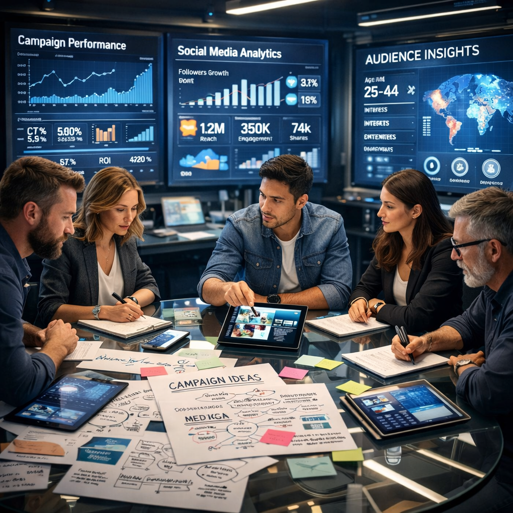 A full-service advertising agency handles everything under one roof — strategy, creative, media buying, digital, outdoor, and analytics.